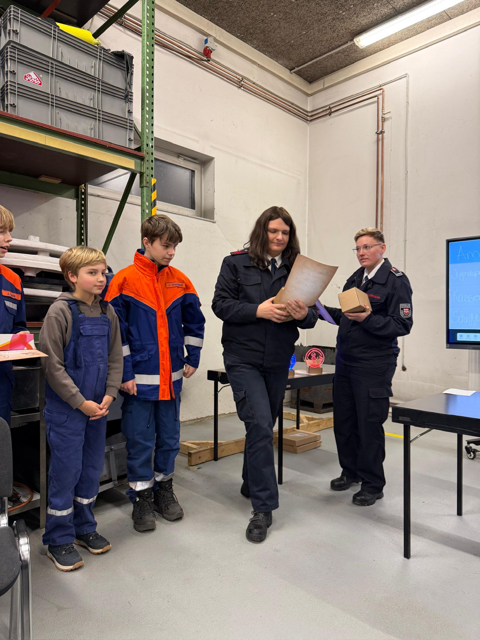 Ein weiterer Programmpunkt der Jahreshauptversammlung war die Ehrung der Jugendlichen mit der höchsten Dienstbeteiligung im Jahr 2025. Für ihr besonders großes Engagement und ihre zuverlässige Teilnahme am Dienstbetrieb wurden Ben Abel und Henrik Kornienka mit dem ersten Platz ausgezeichnet. Den zweiten Platz belegten Konrad Krüger und Julius Weidehoff. Über den dritten Platz freuten sich Pauline Behrens, Tyron Dyck und Jadon Dyck.
